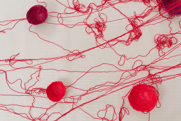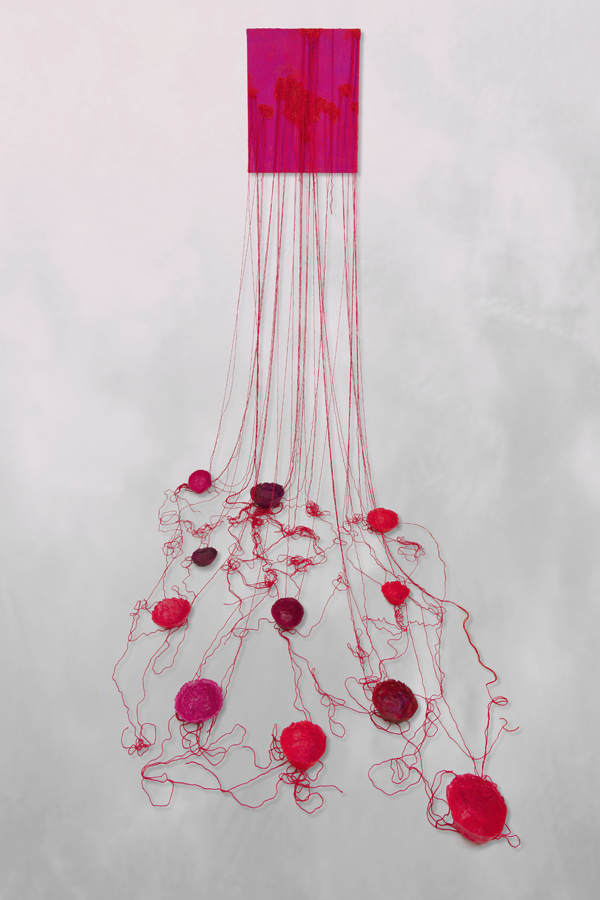Baumwollfäden, Papierobjekte 400 x 100 cm |