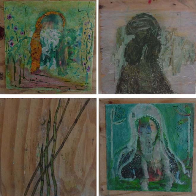 Serie I-IV von 20 , mixed media auf Bauholzplatte , 30 x 30 cm