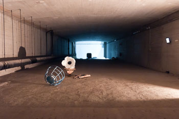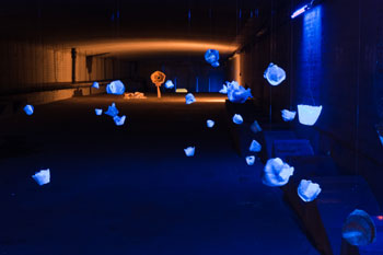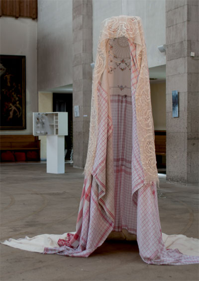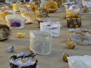 Baumwollfäden, Papierobjekte 400 x 100 cm |